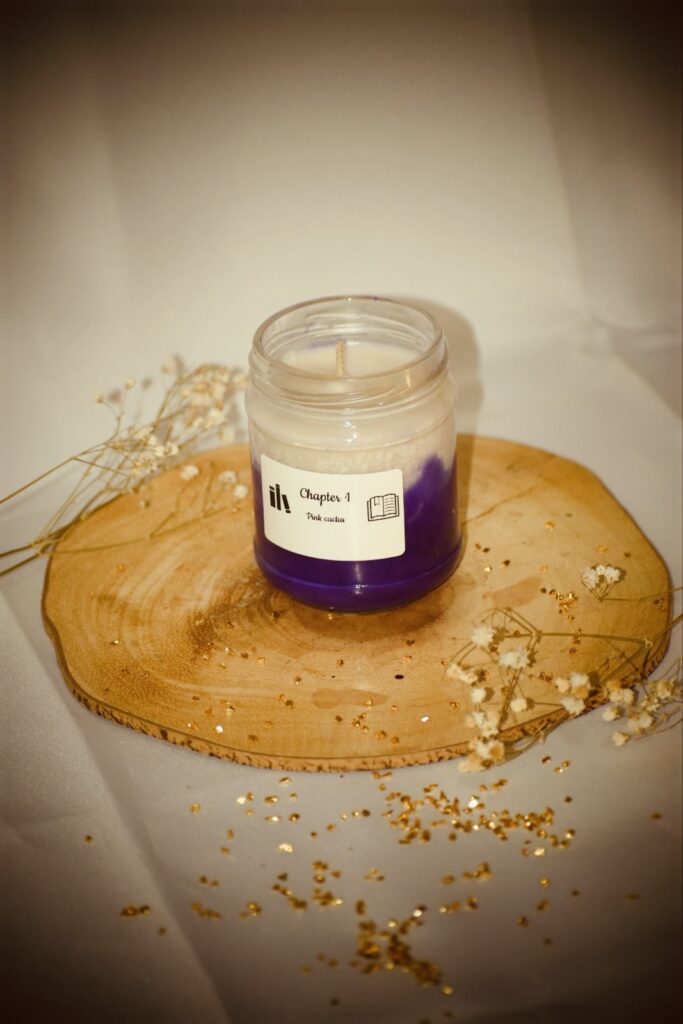 Chapter 1 is a soft, all-white soy candle with delicate pink swirls—like ink on a love letter.